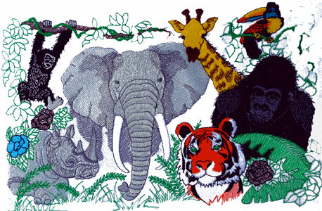 Gestickter Tiger    (C)Dakota Gesticktes Karusell    (C)Dakota Gestickter Clown   (C)Dakota    Gesticktes Tiermotiv (C)Dakota